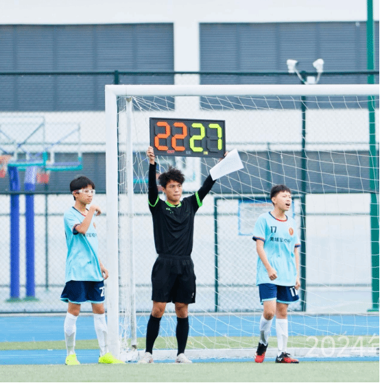 黄俊楠同学于2023年9月入读于广东白云学院体育学院,儿时与足球相逐的他在平日密集的理论课程和足球队训练高强度训练中挤出时间,在体育学院吴丹霞老师(国家级、现役中国足协女超联赛裁判员)和钟航老师(国家级、现役中国足协甲级联赛裁判员)的悉心指导下,黄俊楠认真琢磨足球裁判的知识和本领,一点一点练熟练精。