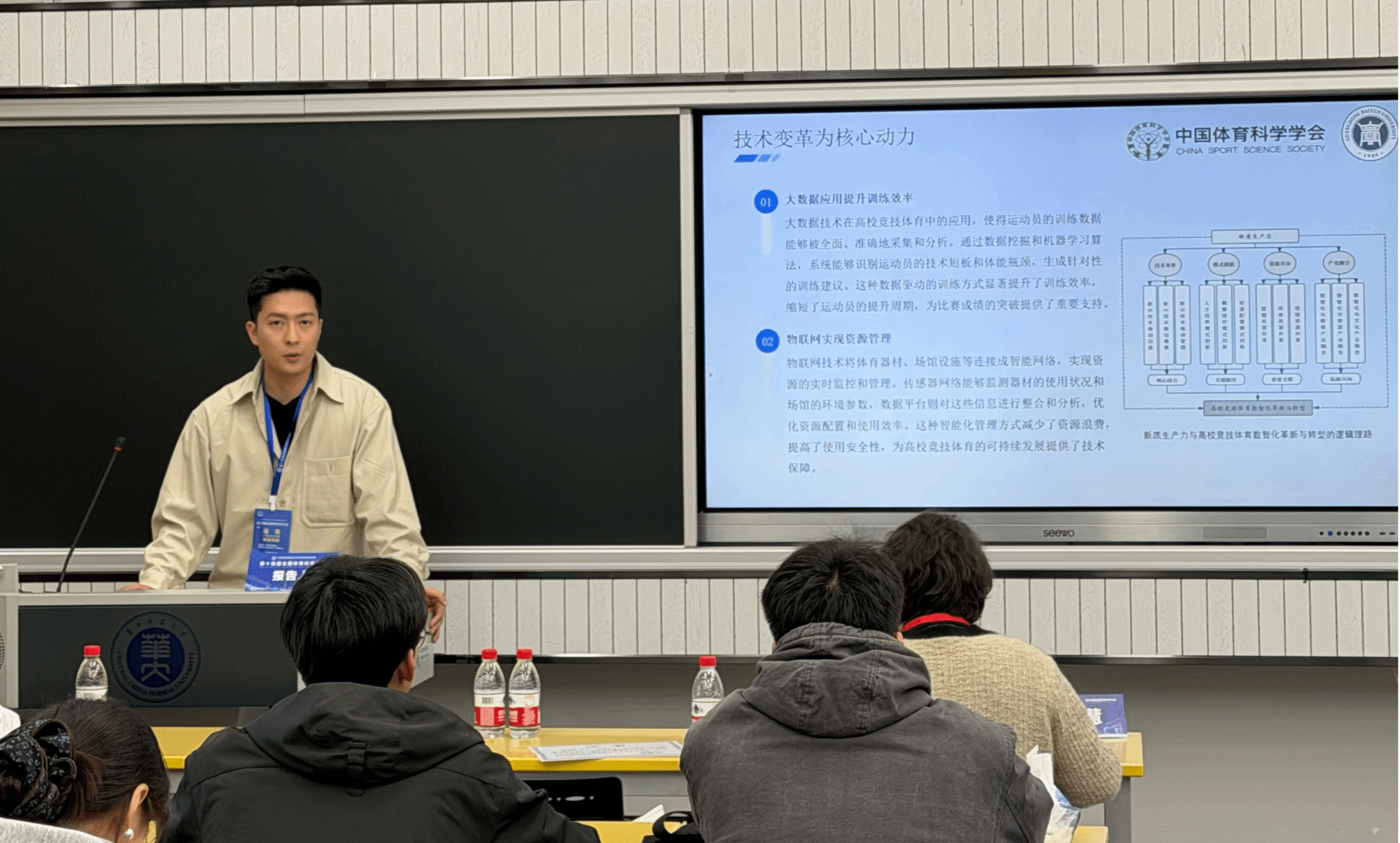 岳亮老师围绕《新质生产力赋能高校竞技体育数智化发展的内涵特征、逻辑理路与实现路径》展开论述,结合新质生产力发展要求,阐释了高校竞技体育数智化发展的核心内涵与内在逻辑,构建了 “技术赋能 - 体系升级 - 人才培养” 的一体化实现路径,为高校竞技体育高质量发展注入新动能。