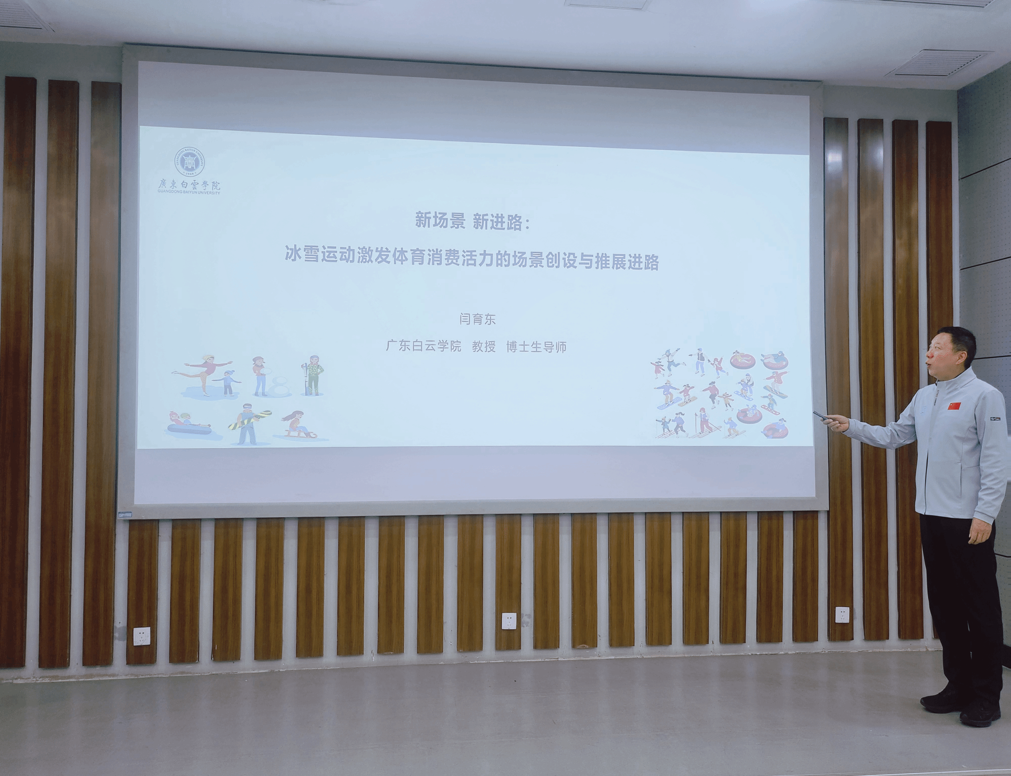 闫育东教授以《新场景 新思路:冰雪运动激发体育消费活力的场景创设与推展进路》为题,紧扣冰雪运动普及与体育产业升级的时代背景,深入分析冰雪运动消费场景的核心特征与创设逻辑,提出兼具创新性与可操作性的推广路径,为推动冰雪运动从 “冷资源” 转化为 “热经济” 提供了理论支撑与实践指引。