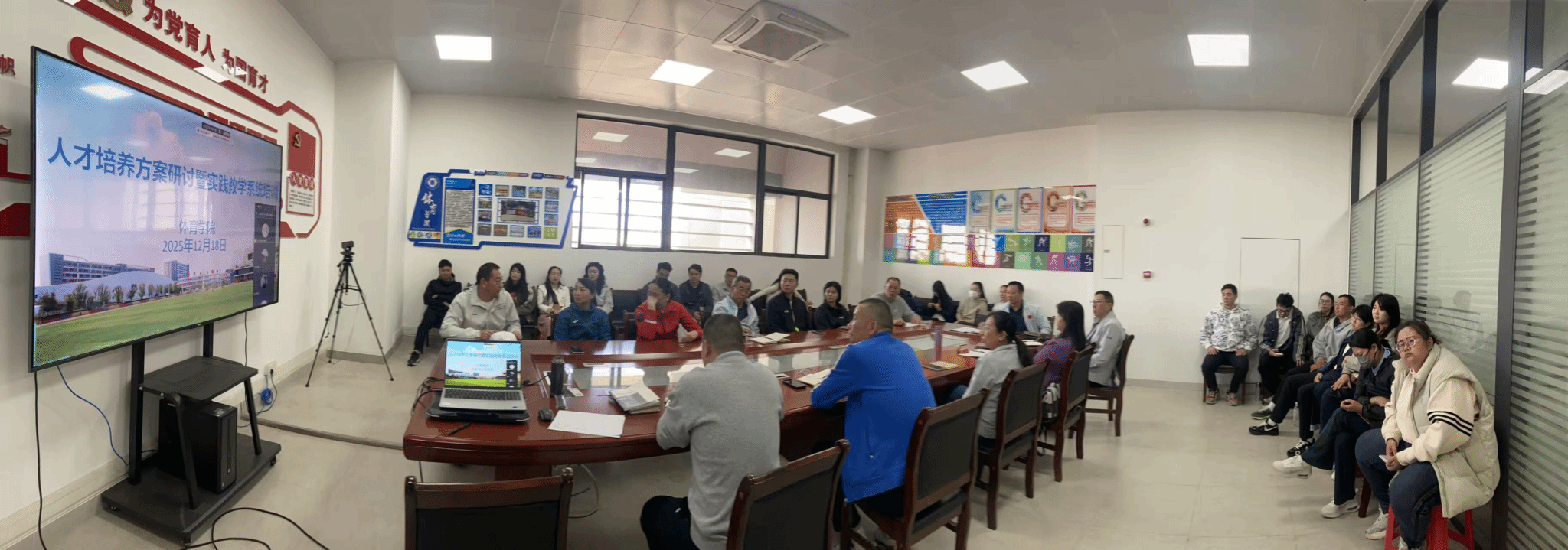 2025年12月18日,体育学院成功举办“人才培养方案研讨暨实践教学系统培训”专题会议,聚焦OBE(成果导向教育)理念在体育技能课堂教学中的深度融合,全面推进休闲体育与社会体育指导与管理专业的高质量发展。教务处、体育学院相关负责人、专业带头人及全体专任教师参会。