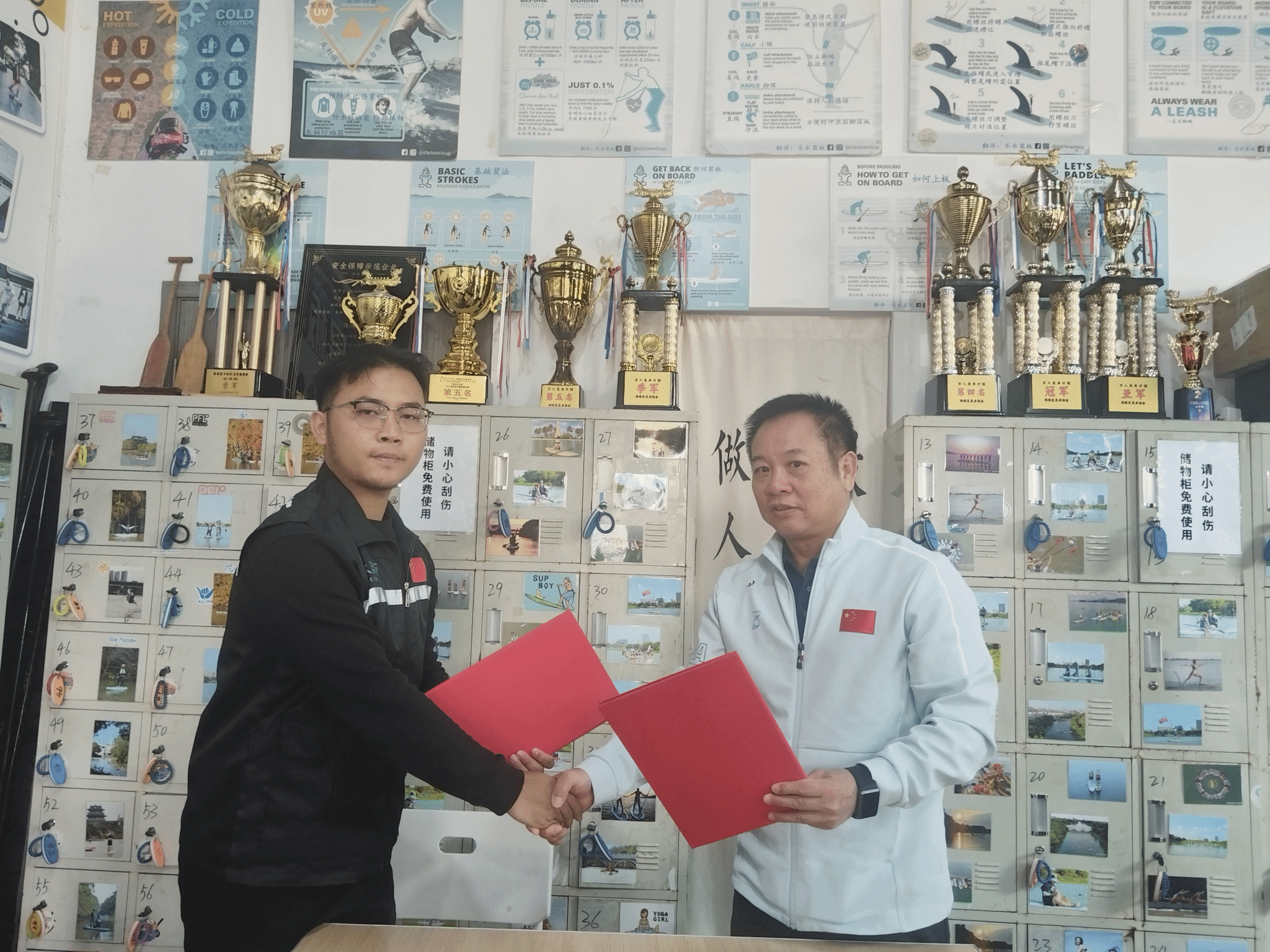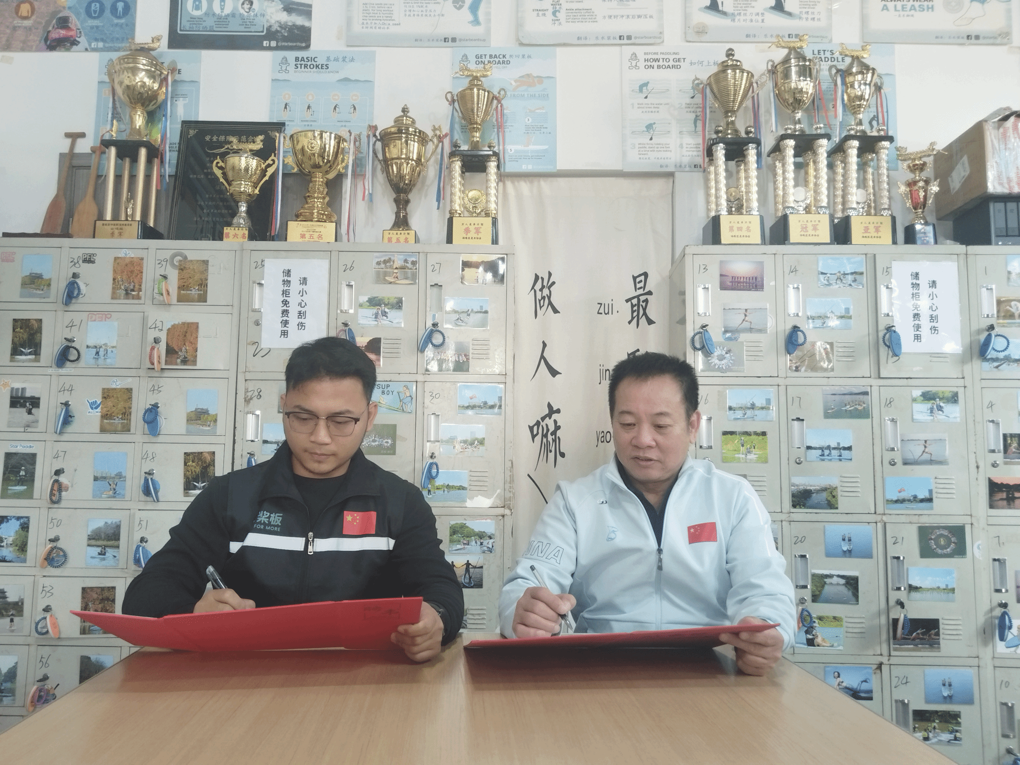 环岛路线结束后,校企双方在俱乐部会议室进行了座谈。崔曼峰院长代表学校与广东乐水浆板俱乐部签署校企合作协议。校企双方就“课程嵌入+技能考证+实习就业”一体化合作模式达成初步共识,计划共建“广东白云学院—乐水桨板水上运动实训基地”,共同开发桨板初级、中级教练课程,为学生提供教练助理、赛事运营、水上救援等实习岗位。