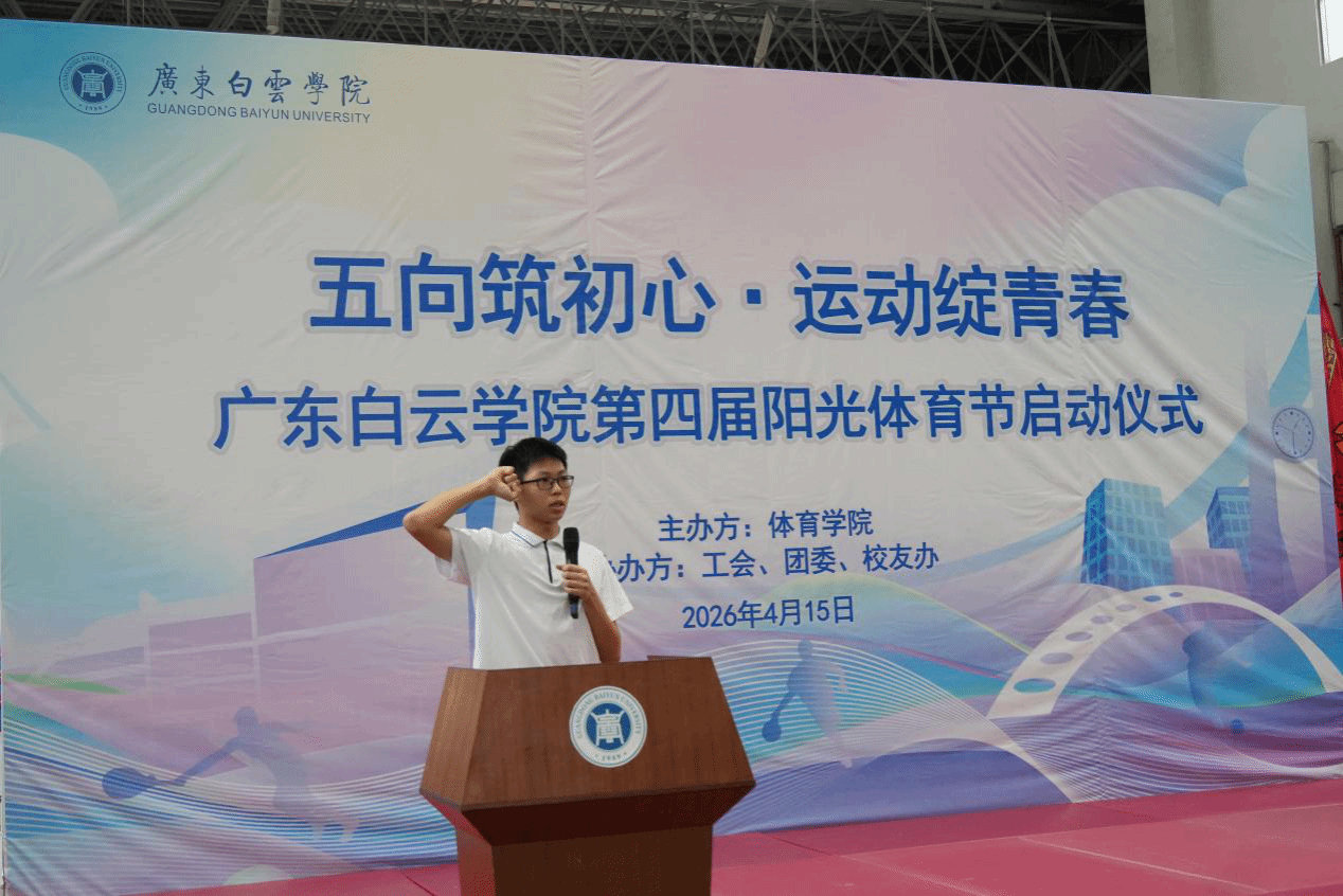 校长助理柳贵东在开幕辞中指出,当前我国正全力推进体育强国建设,深化体教融合,让体育精神融入人才培养全过程,这正是学校举办阳光体育节的时代意义与责任担当。学校始终秉承“敢为人先、追求卓越”的白云精神,以“立德树人、五育并举”为根本遵循,深耕体育育人沃土。柳贵东强调,本届体育节紧扣全民健身背景,坚守“月月有活动、人人可参与”的核心理念,旨在让每一位师生都能找到适合自己的运动项目,在运动中强健体魄、收获友谊、锤炼品格。他希望新老白云人以本届体育节为契机,走出教室、走向操场,让体育精神融入血脉,让白云情谊代代相传。