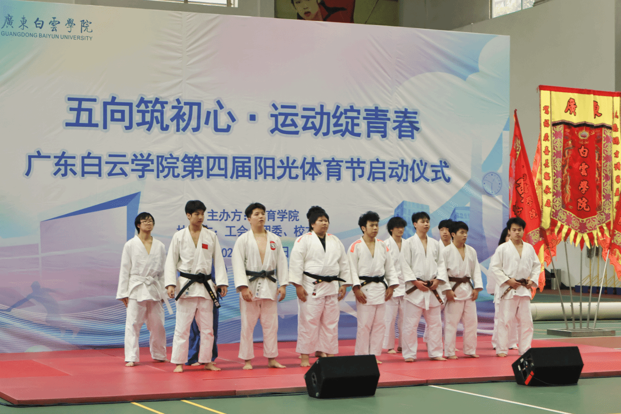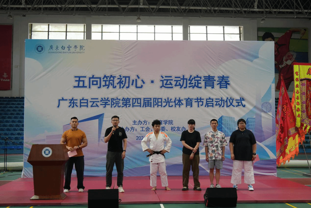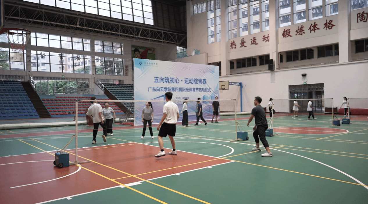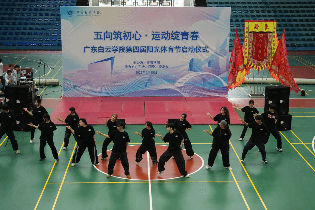 为深入贯彻习近平总书记在全国教育大会上的重要讲话精神,积极响应国家全民健身战略号召,引导广大师生在体育运动中“享受乐趣、增强体质、健全人格、锤炼意志”,培养德智体美劳全面发展的时代新人,4月15日下午,广东白云学院第四届阳光体育节开幕式在西校区体育馆隆重举行。本届体育节以“五向筑初心・运动绽青春”为主题,由体育学院主办,校团委、校友办、工会联合支持协办,副校长纪秋颖、校长助理柳贵东出席开幕式,各二级学院党委(党总支)书记、团委书记、校友代表及师生代表共同见证这一热血时刻。