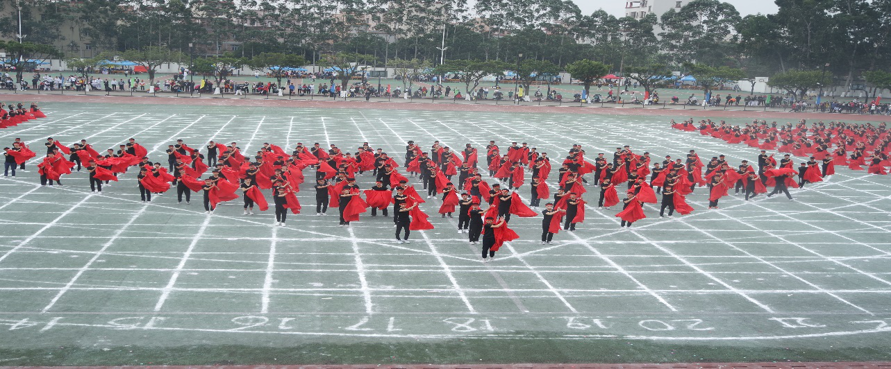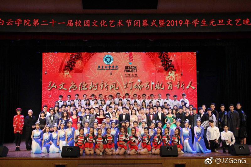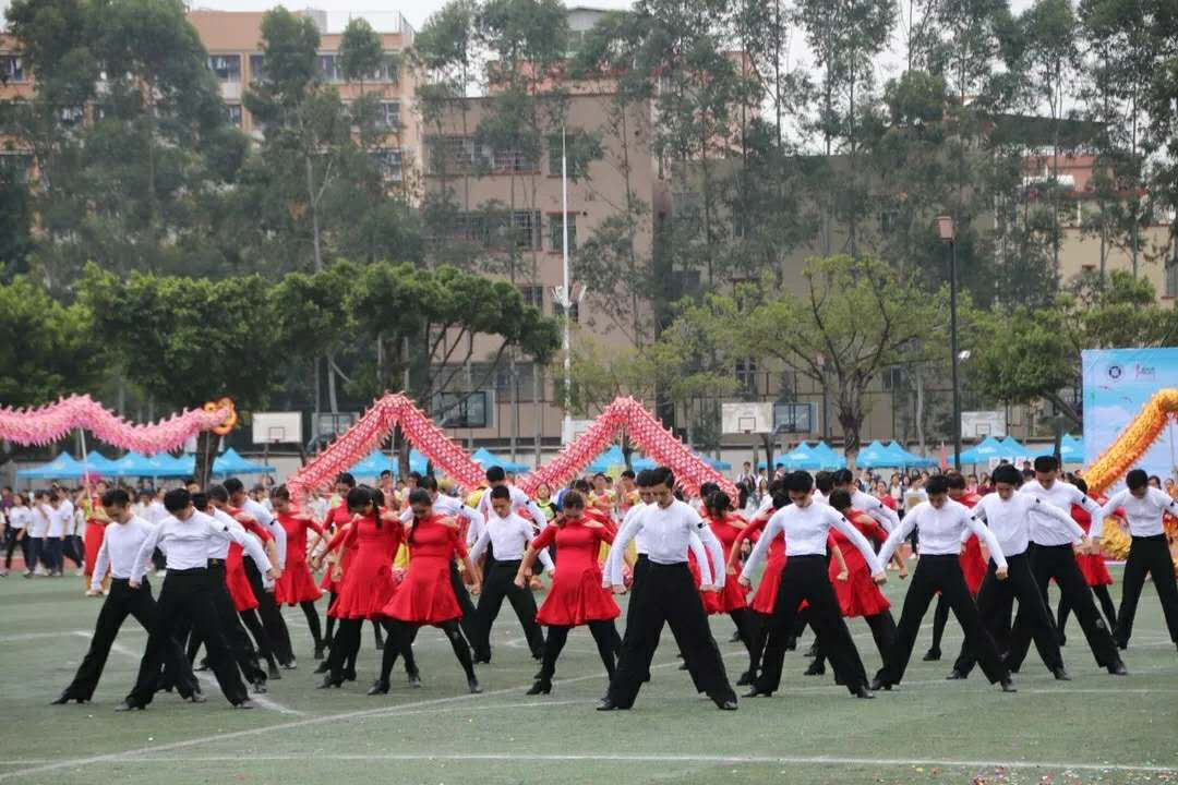 图为广州市白云工商技师学院2019年元旦文艺晚会开幕。开幕表演在教练和老师的带领下,顺利完成