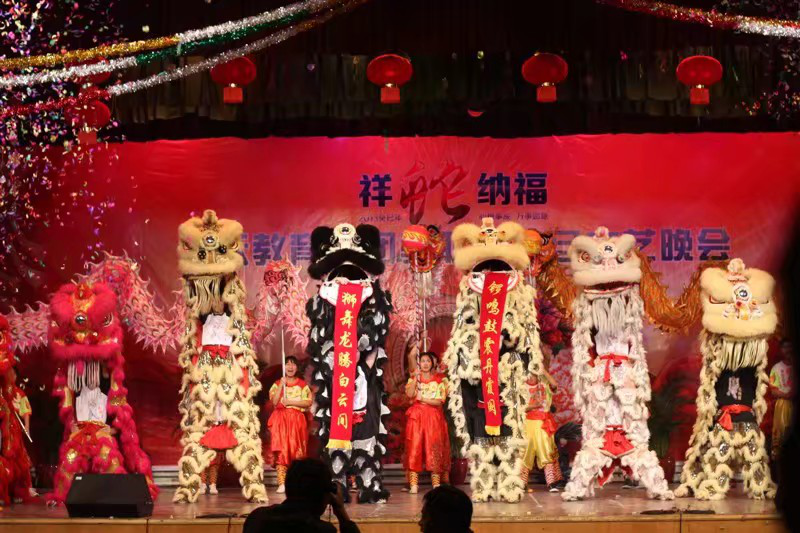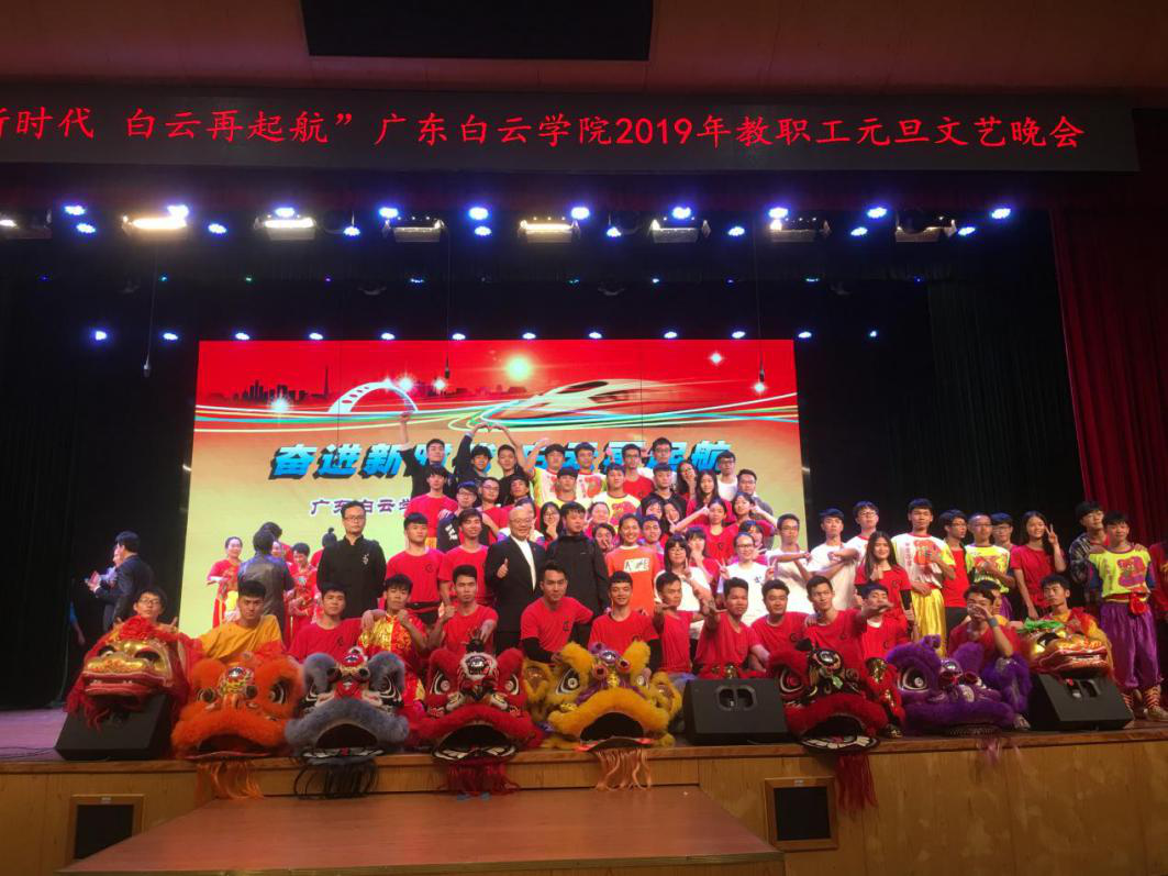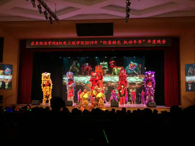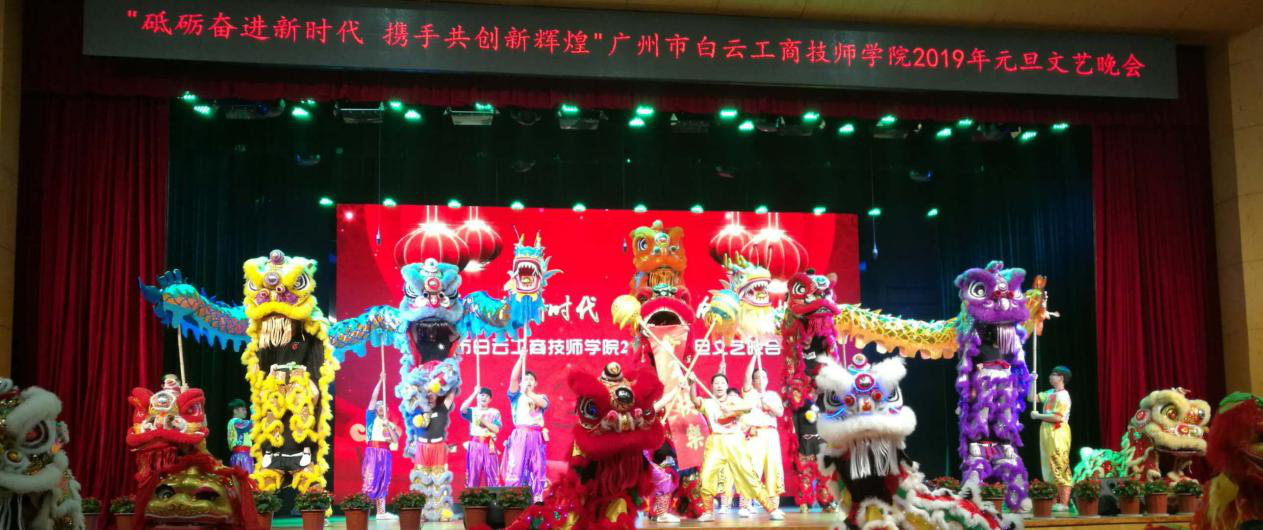 图为我校2019年教职工元旦文艺晚会。我校龙狮团在教练和老师的带领下,为观众带来了精彩的龙狮表演,表演赢得了台下教职工的热烈掌声与好评