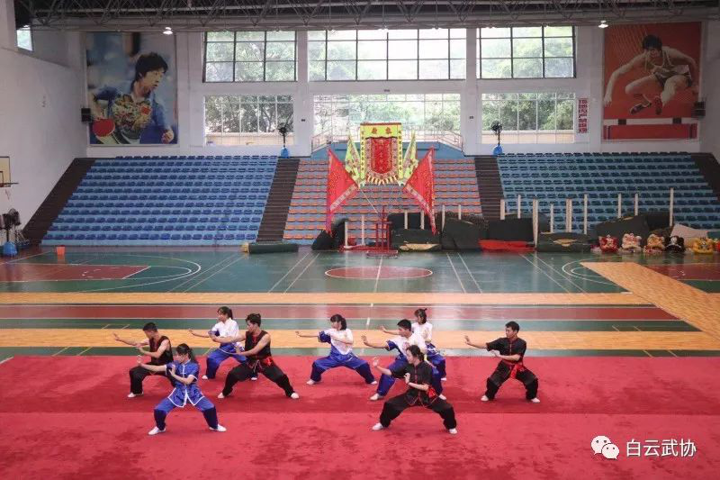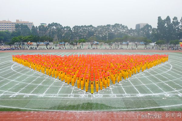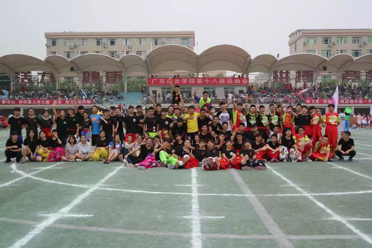 图为广东白云学院2018年校运会开幕式。我校龙狮团与武术俱乐部成员在老师的带领下,为校运会开幕式编排节目