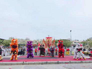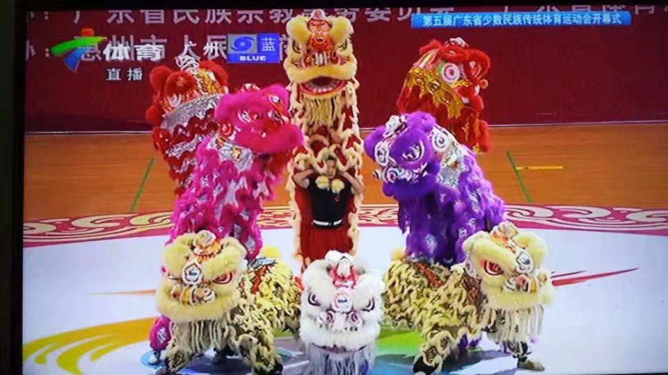 图为2019年1月,我校龙狮团参加的校外龙狮表演