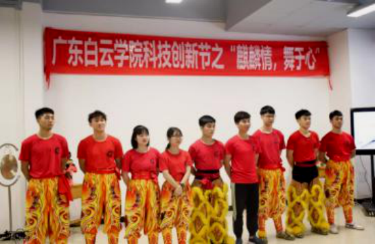 图为2019年4月,广东白云学院科技文化创新节之“麒麟情,舞于心”醒狮表演