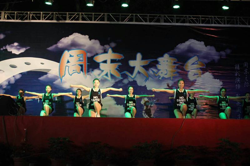 上图,我队成员与体育舞蹈选修课的同学在老师的指导下编排一支千人小苹果于2014年12月出演“广东白云学院校运会开幕仪式”,历经多个月的排练,我队成员表演赢得同学、老师以及校领导的赞扬