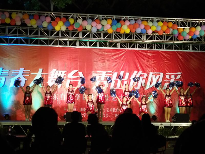 上图,我校体育舞蹈队在老师的指导下编排一支艺术表演舞于2016年12月出演“广东白云学院校运会开幕仪式”,历经多个月的排练,我队成员表演赢得同学、老师以及校领导的赞扬