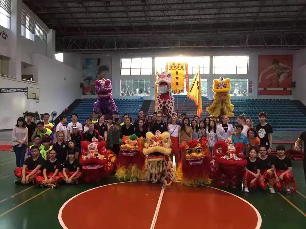 图为2018年澳大利亚友人来我校交流龙狮文化